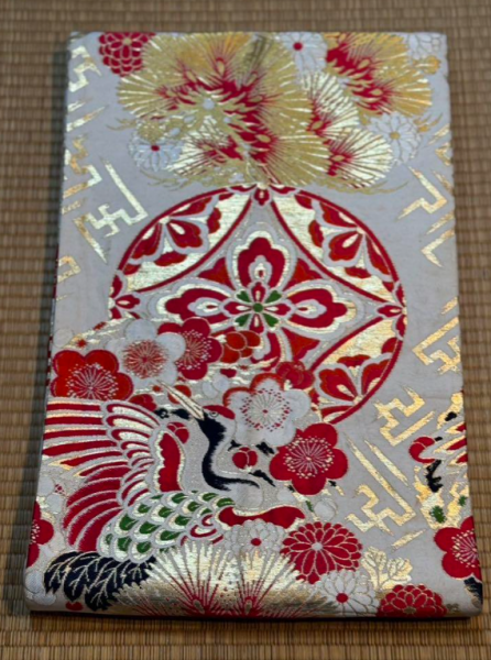 丸帯は巾 約68cm 長さ約448cmで織られ、仕立てると表裏ともに柄があります。