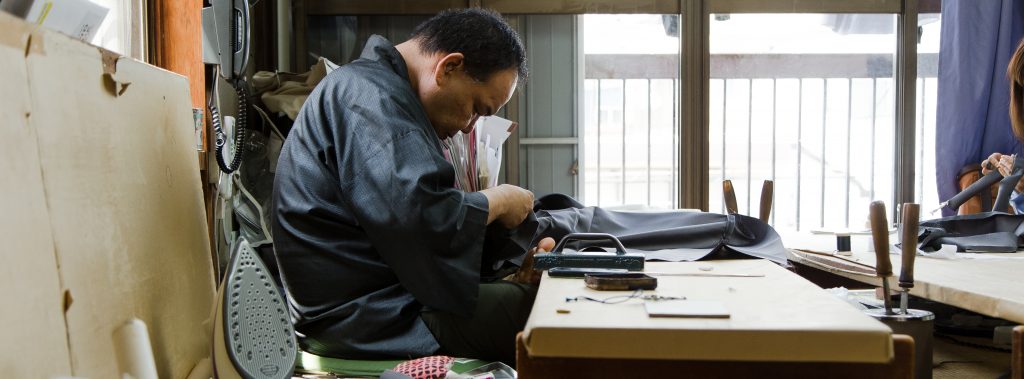 手でひと針ひと針縫う和裁士の丁寧な仕事は、